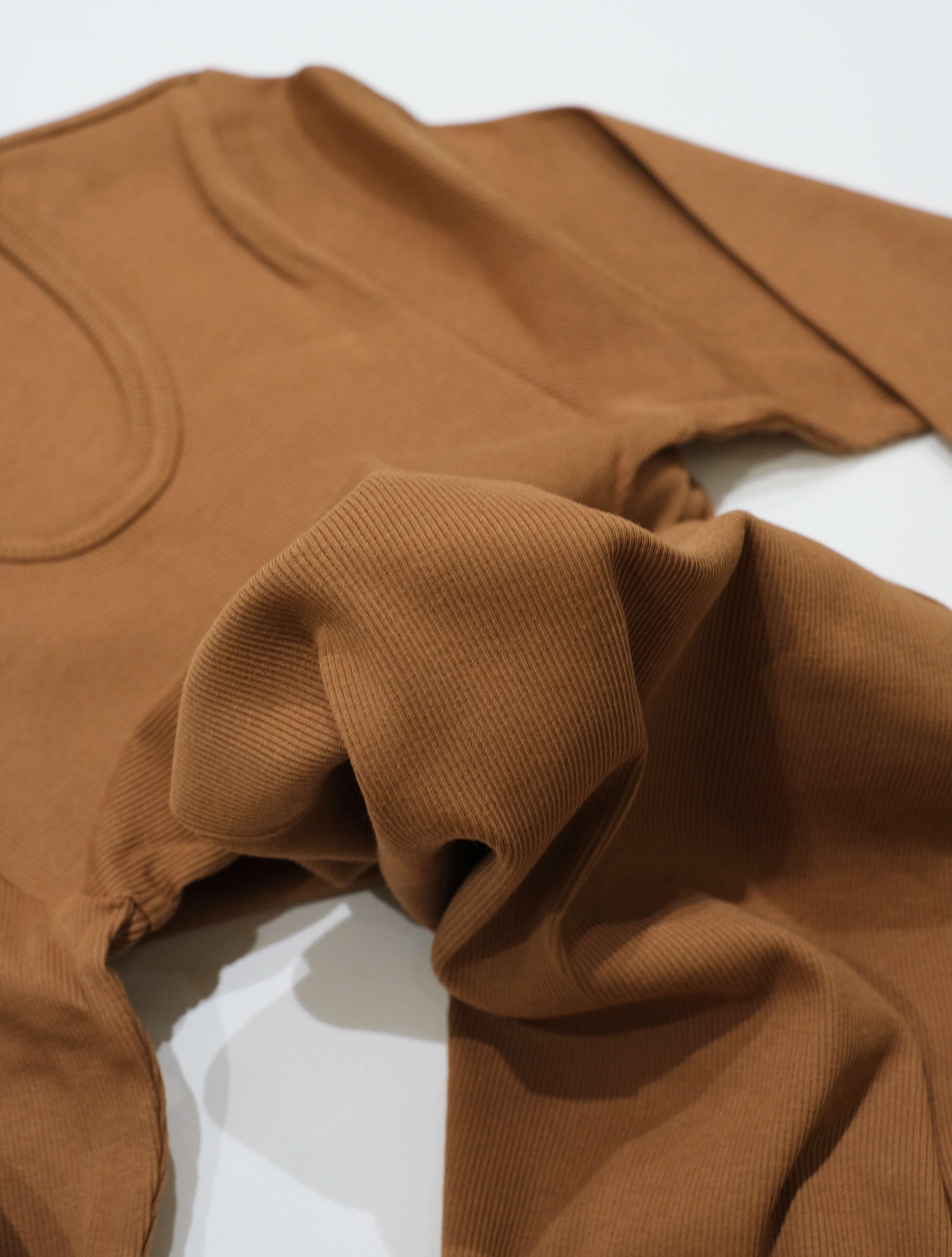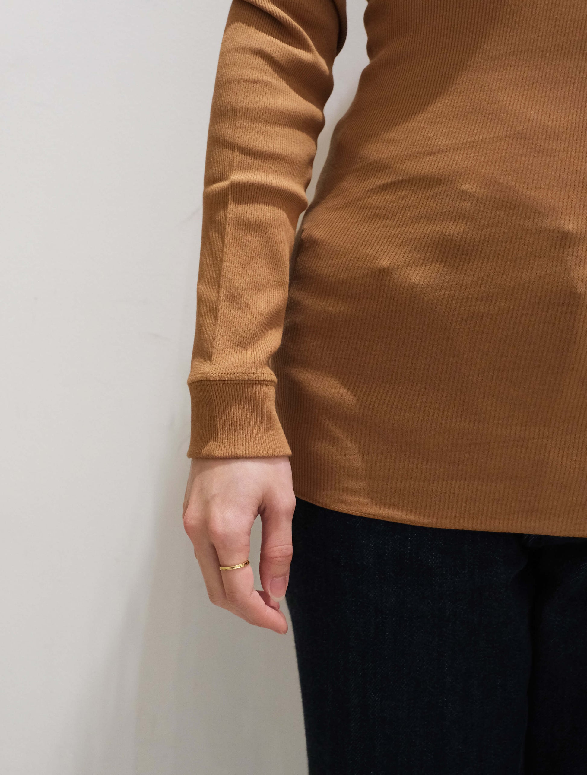 細やかなリブの畝や袖口・ネックラインのパイピングデザインがアクセントとなり、保温性にも優れているため、一枚でもインナーとしても幅広く活躍してくれます。