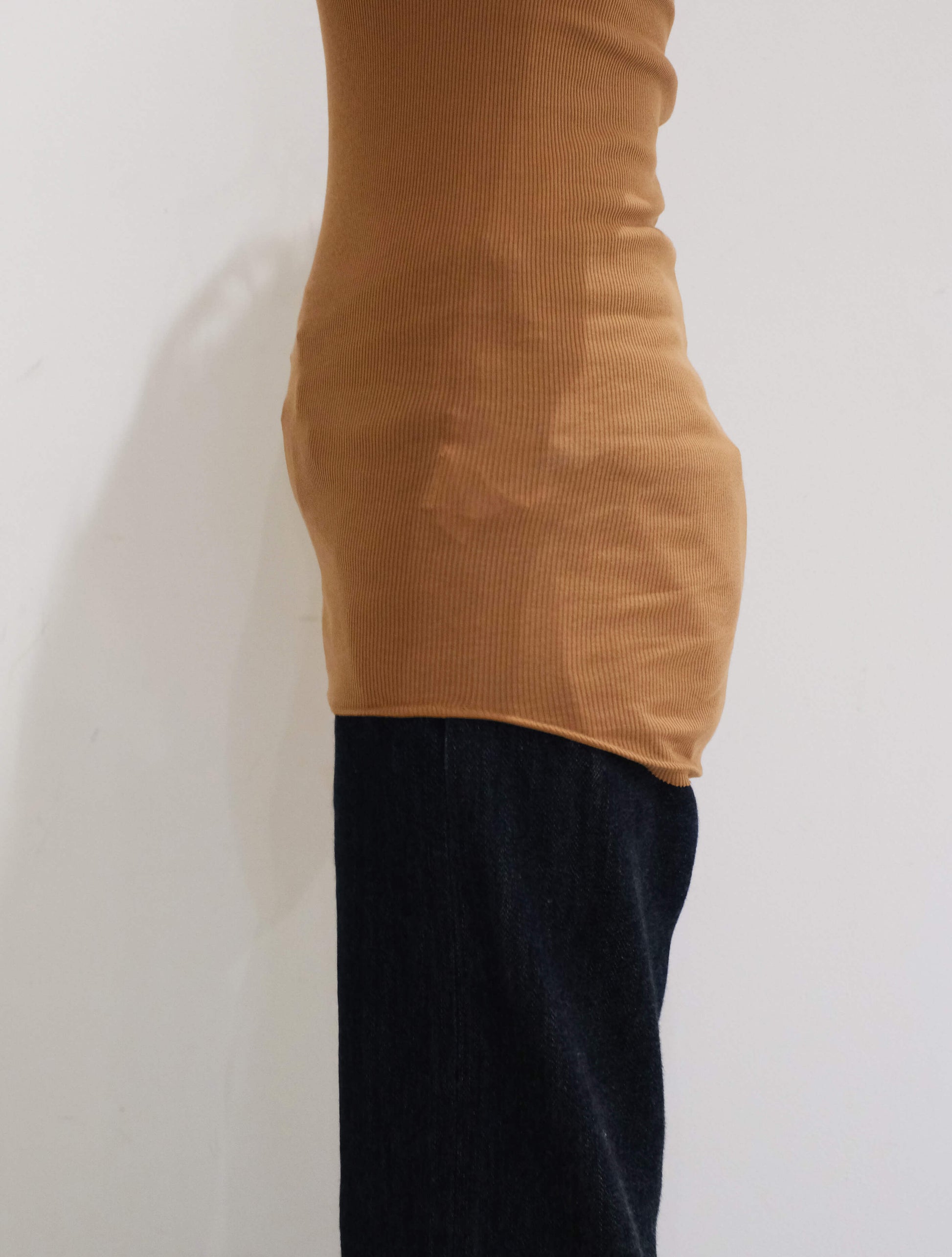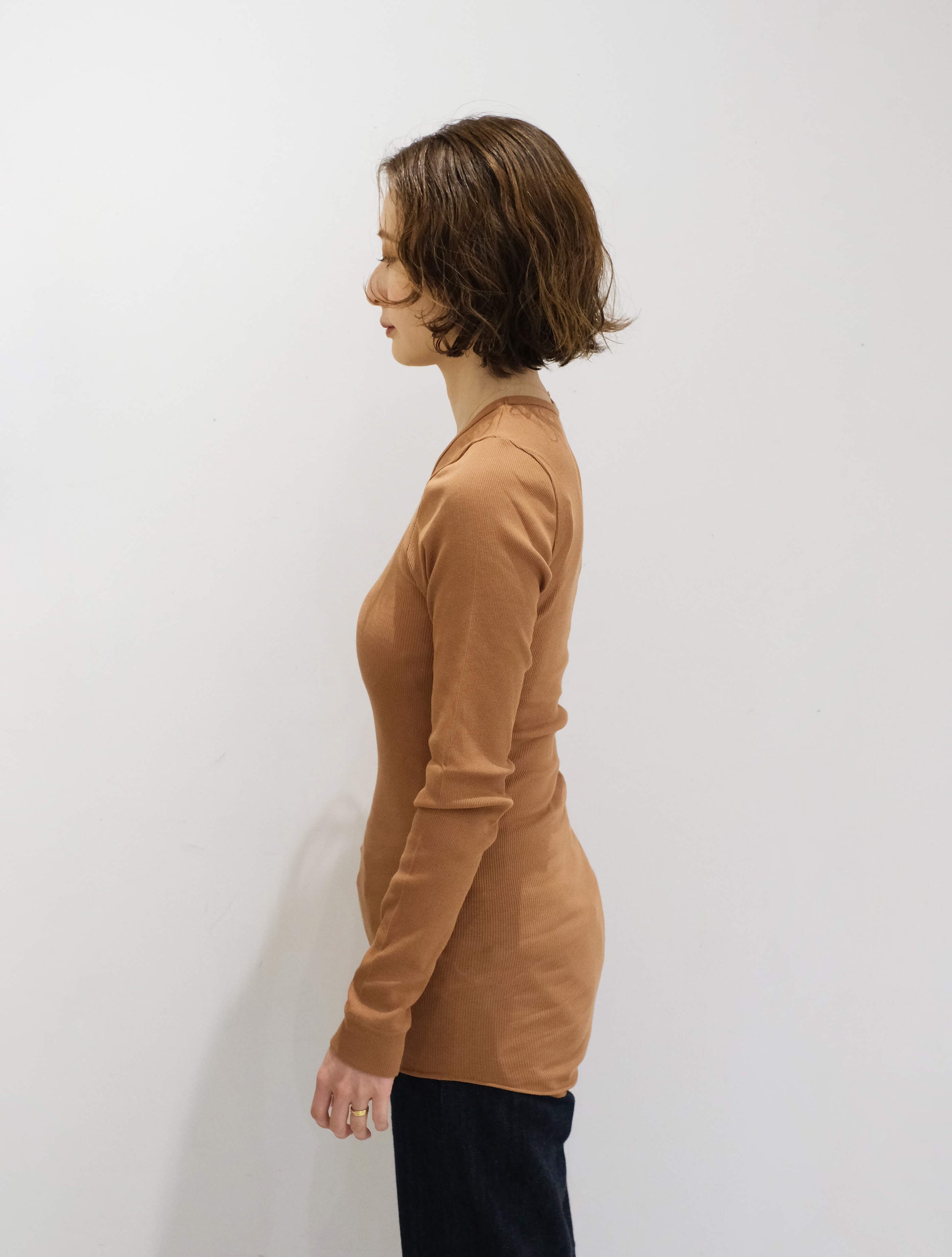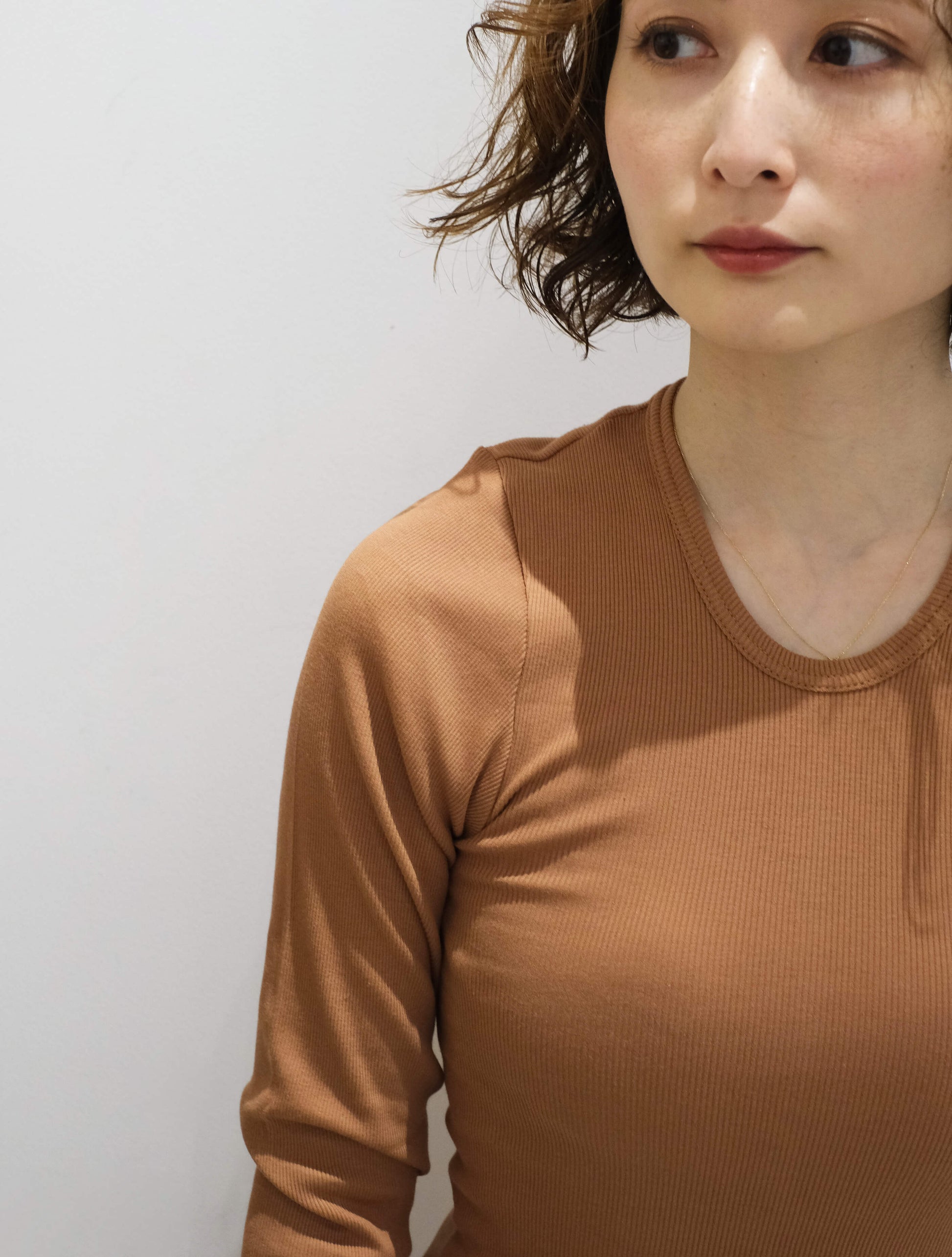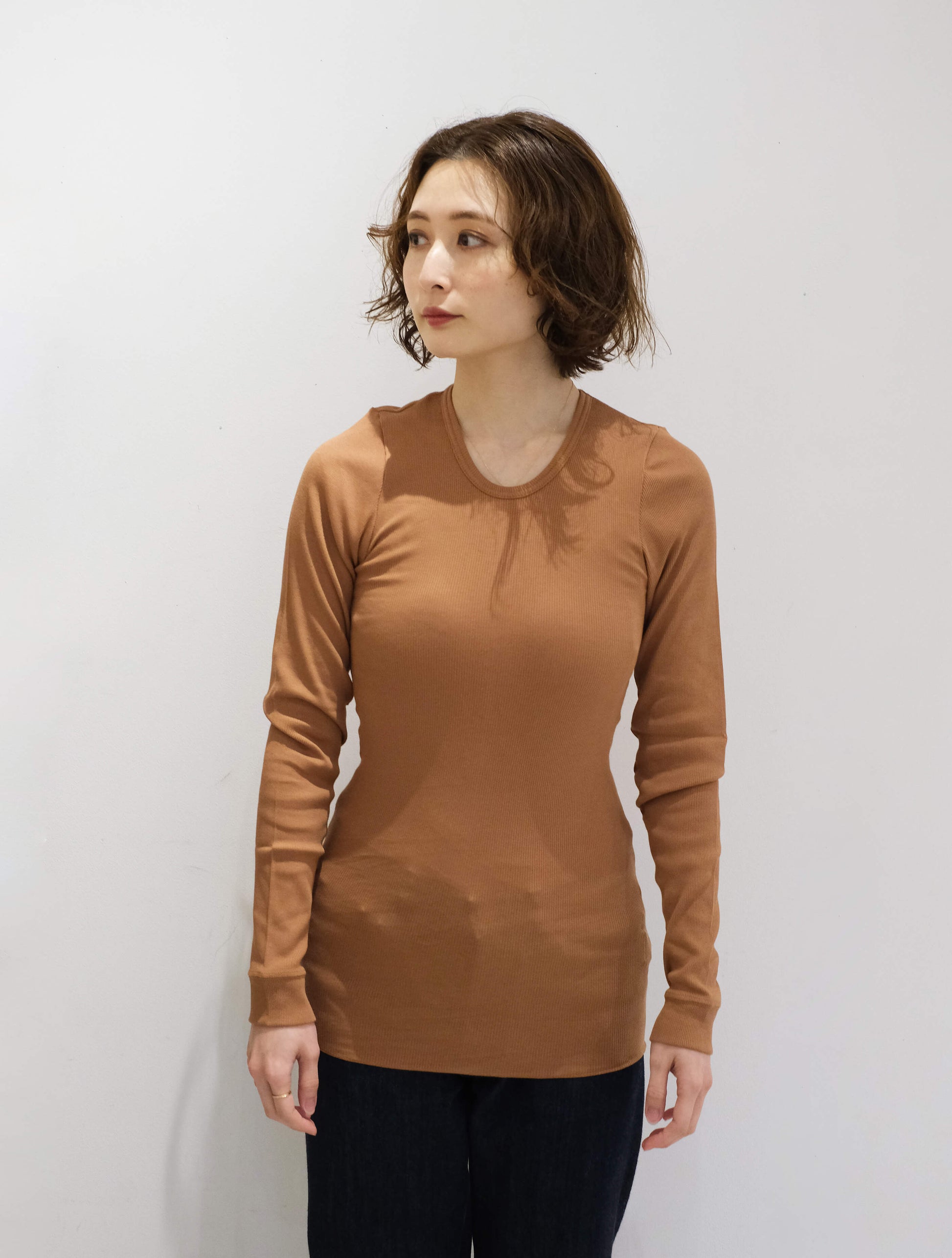 オーガニックコットンを使用したリブクルーネックロンT。