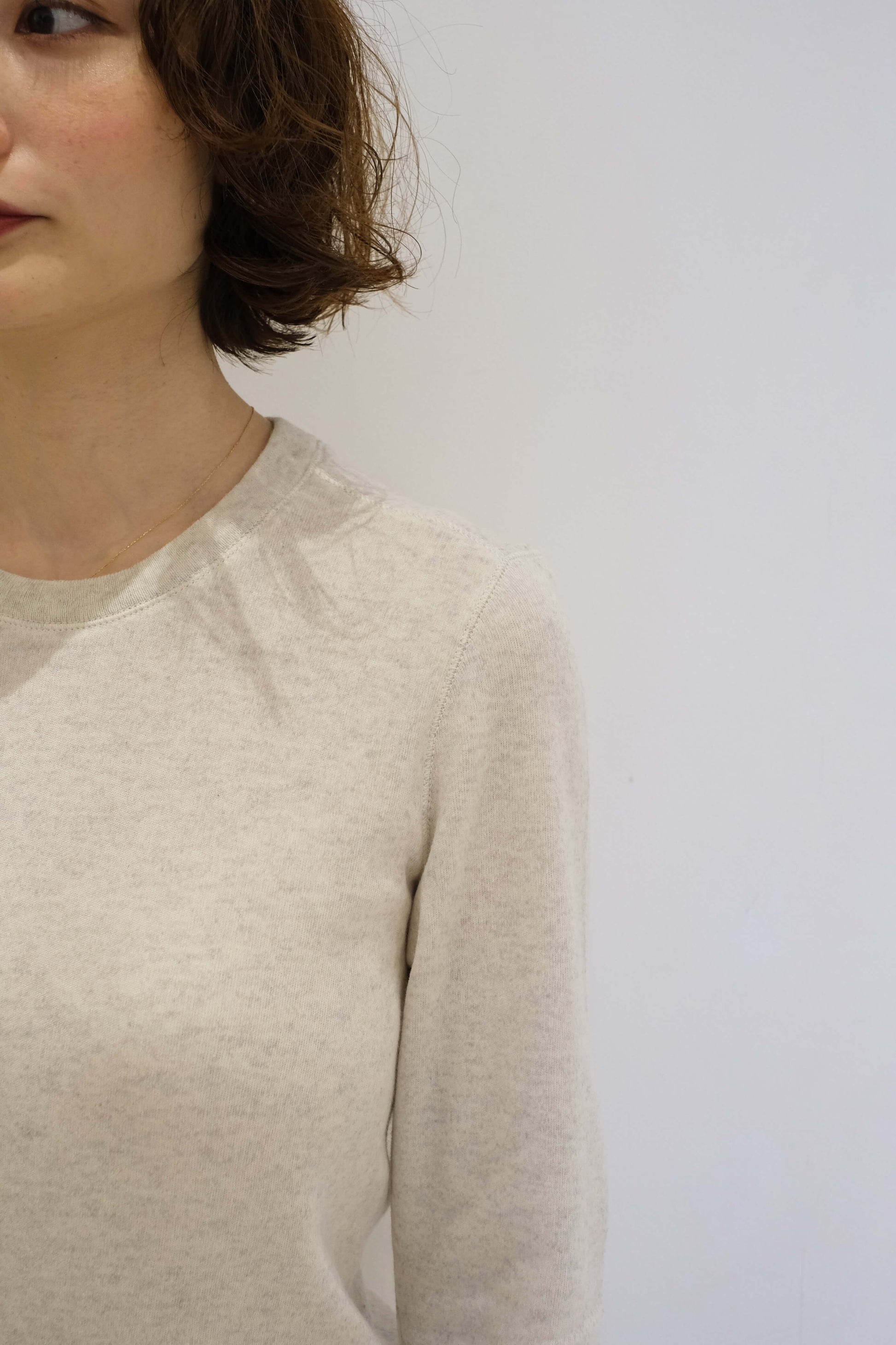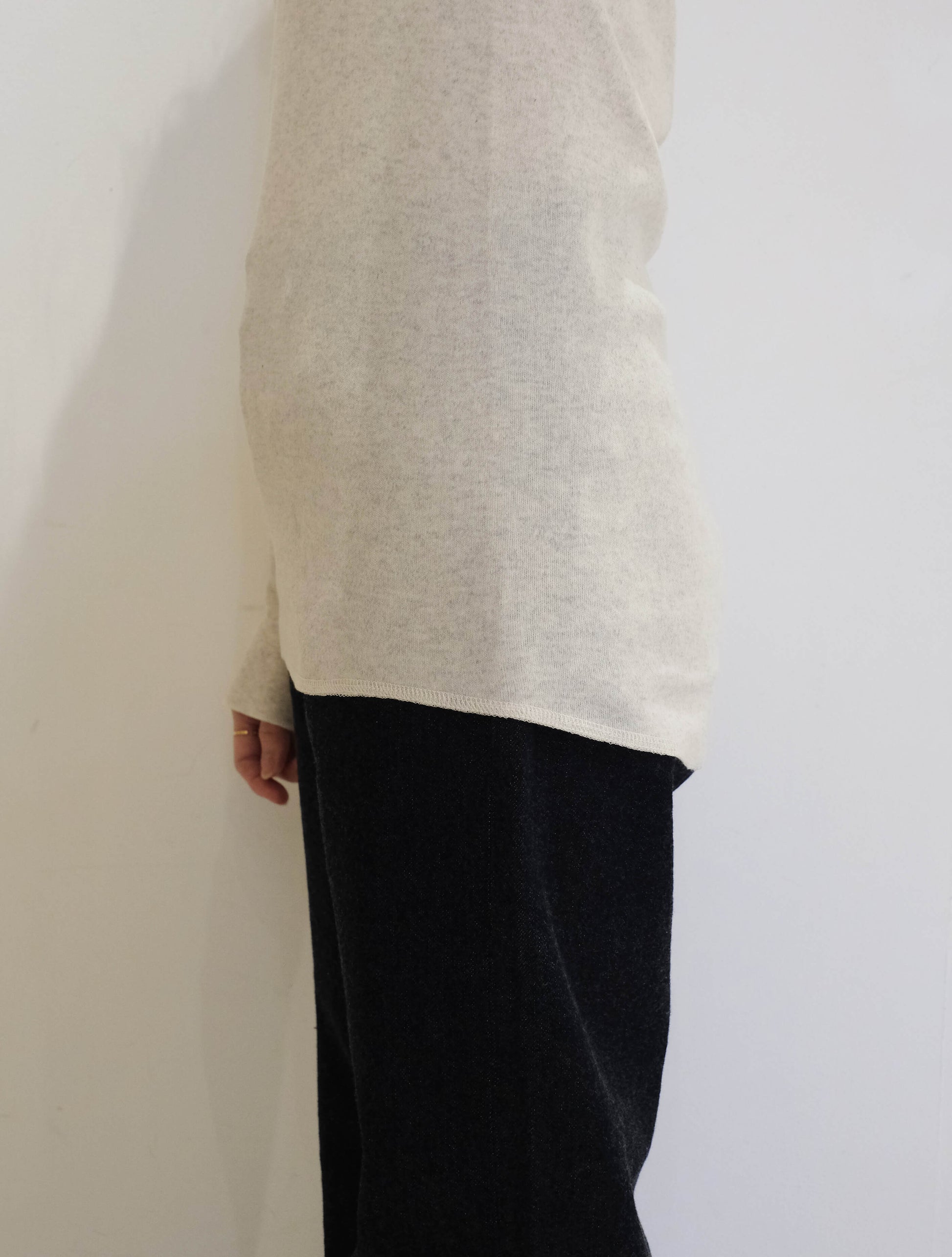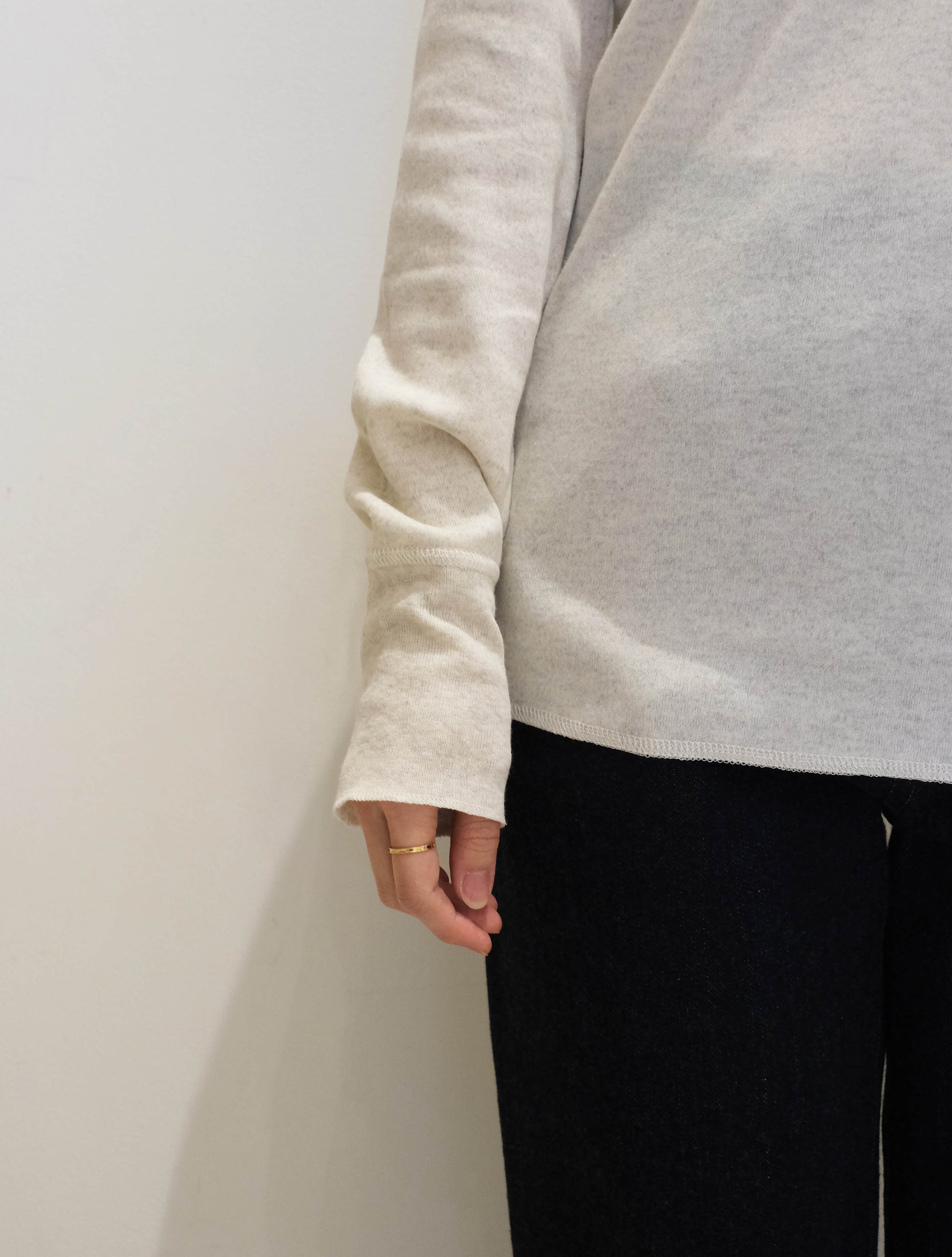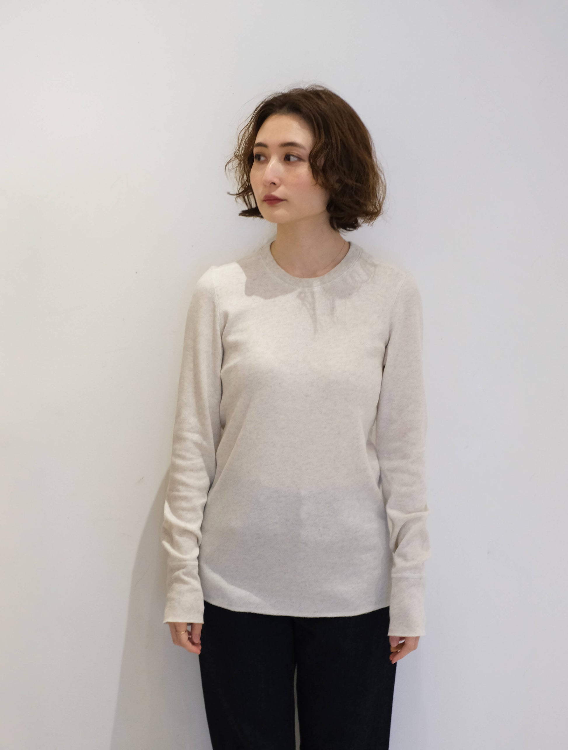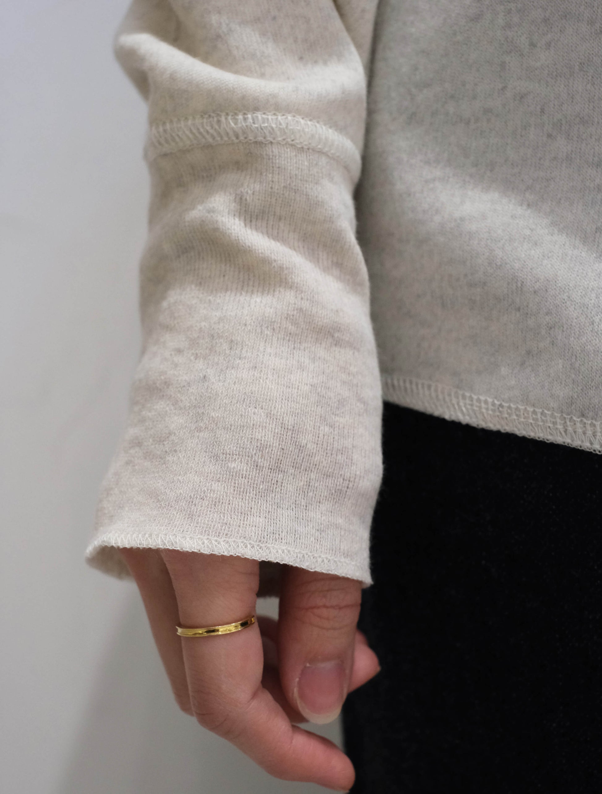 リブのテンションやサイズ感を細かく調整し、着心地とシルエットのバランスを大切に仕上げられており、やさしい伸縮性が心地よく身体にフィット。