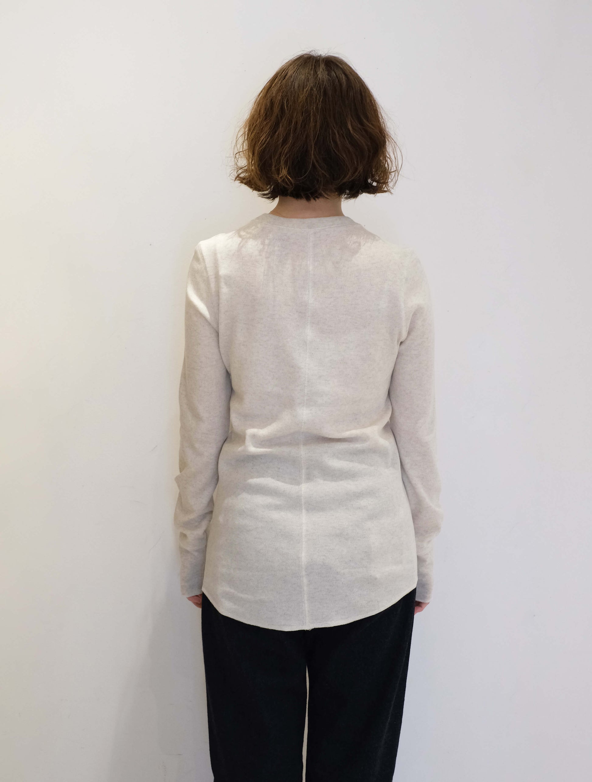 ネックや袖口のリブ、裾のラウンドシルエットが程よくアクセントとなり、シンプルながらもデザイン性のある一枚。