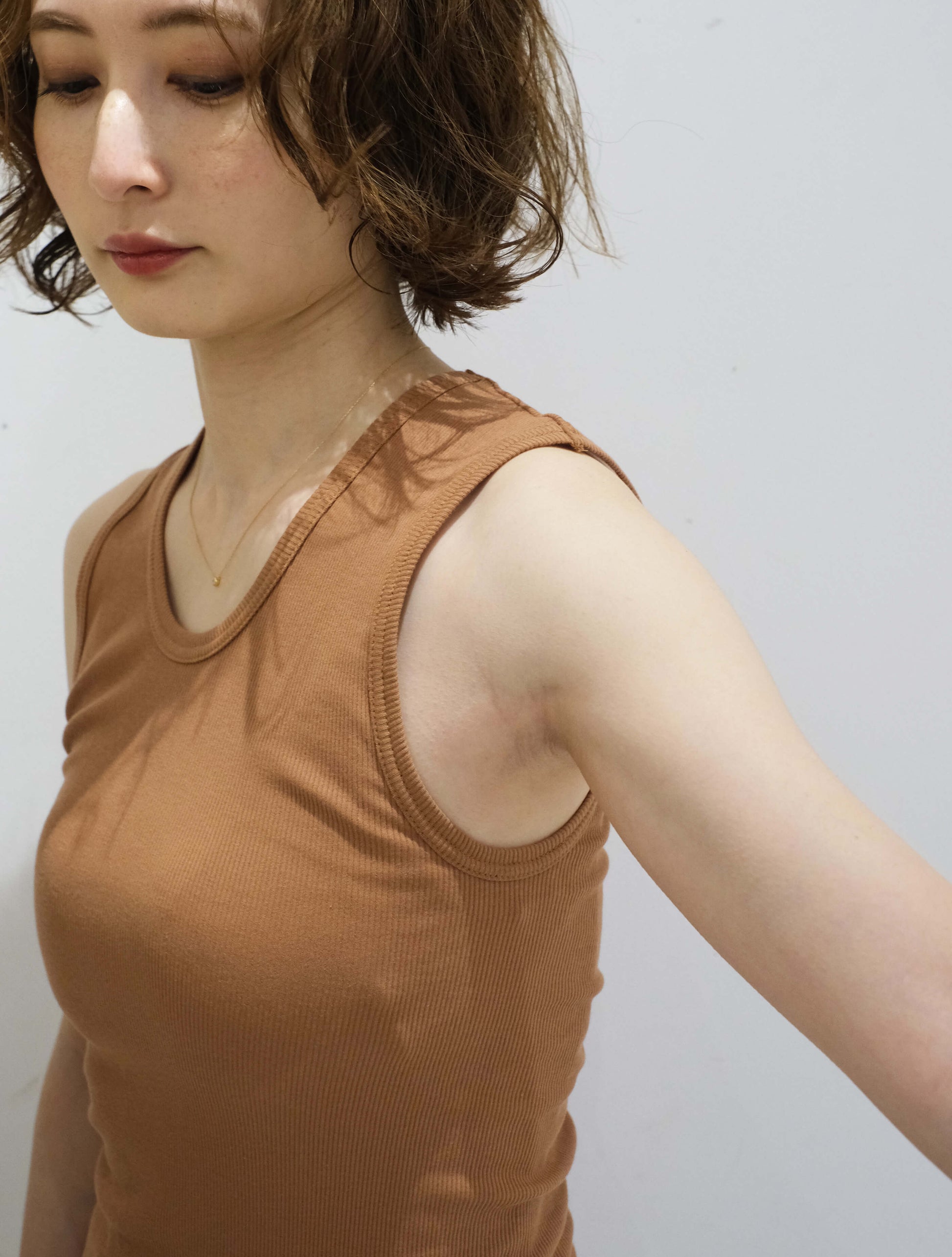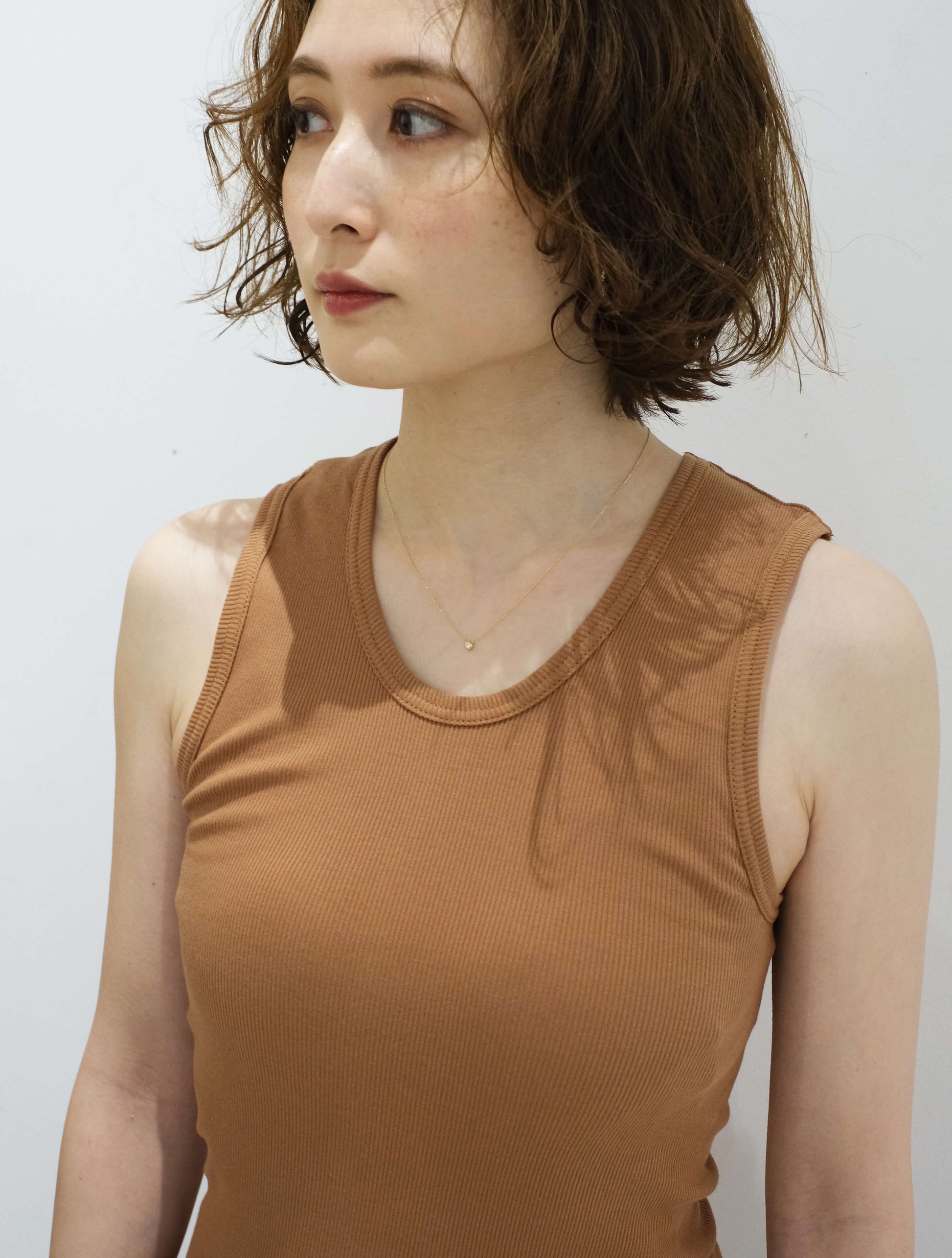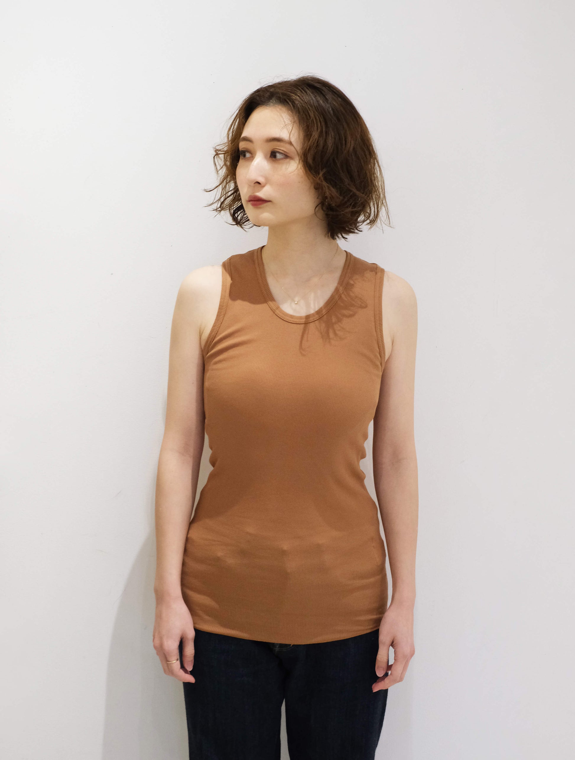 オーガニックコットンを使用したリブタンクトップ。