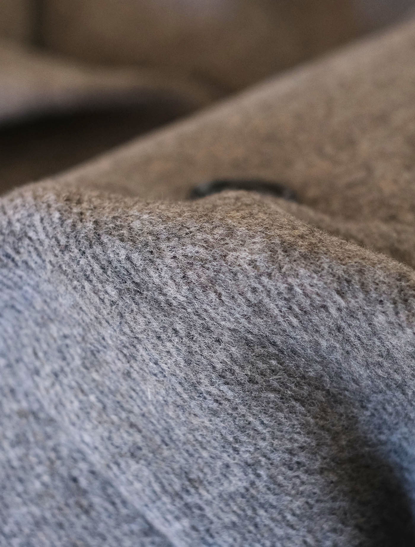 こだわりぬいて作られた素材は、選び抜かれた高品質なラムウール原料を国内産地特有の美しい水を使用して一流の職人達が仕上げることで、非常に美しく上質な毛並みの表情、その見た目に反する驚くほどの軽さ、保温効果に優れた機能性を持った素材です。