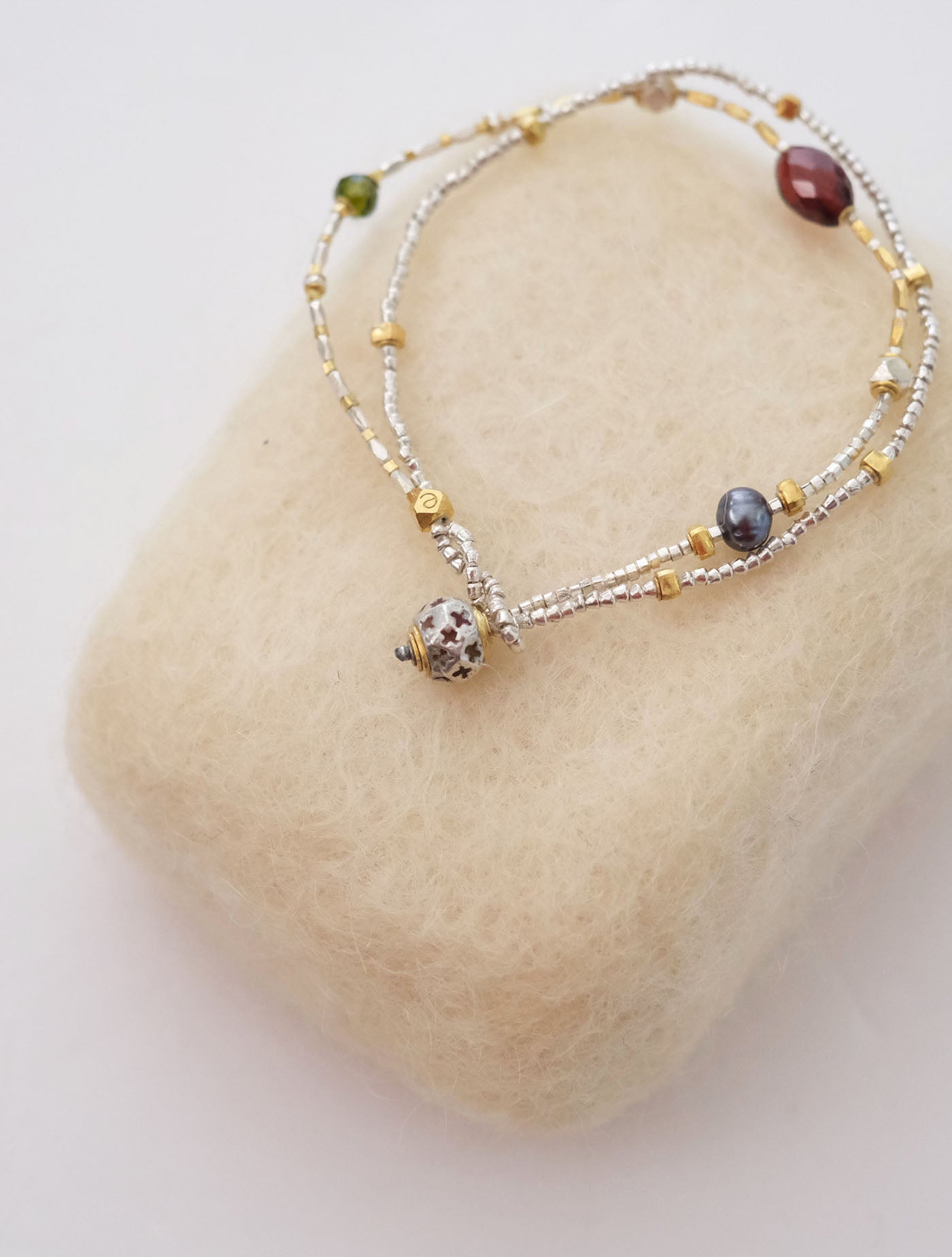 また、ゴールドコーティングビーズは、職人によって1つ1つハンドメイドで仕上げられたシルバービーズに24金をコーティングしています。