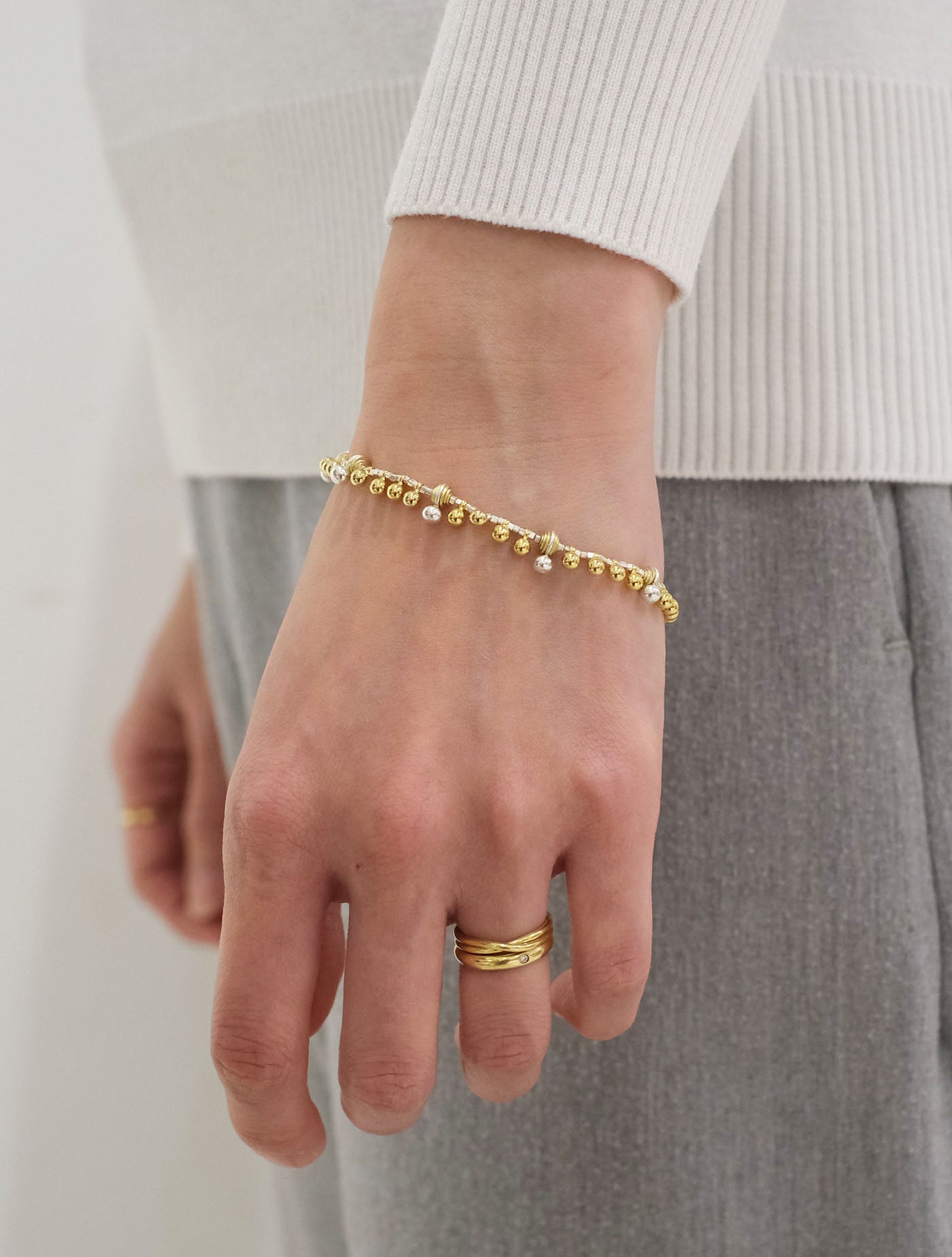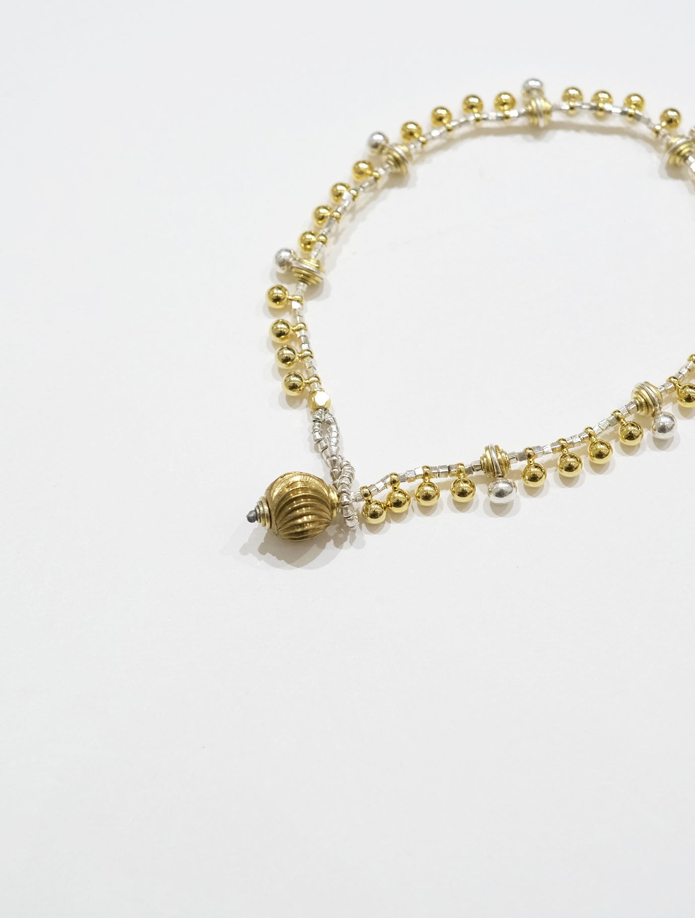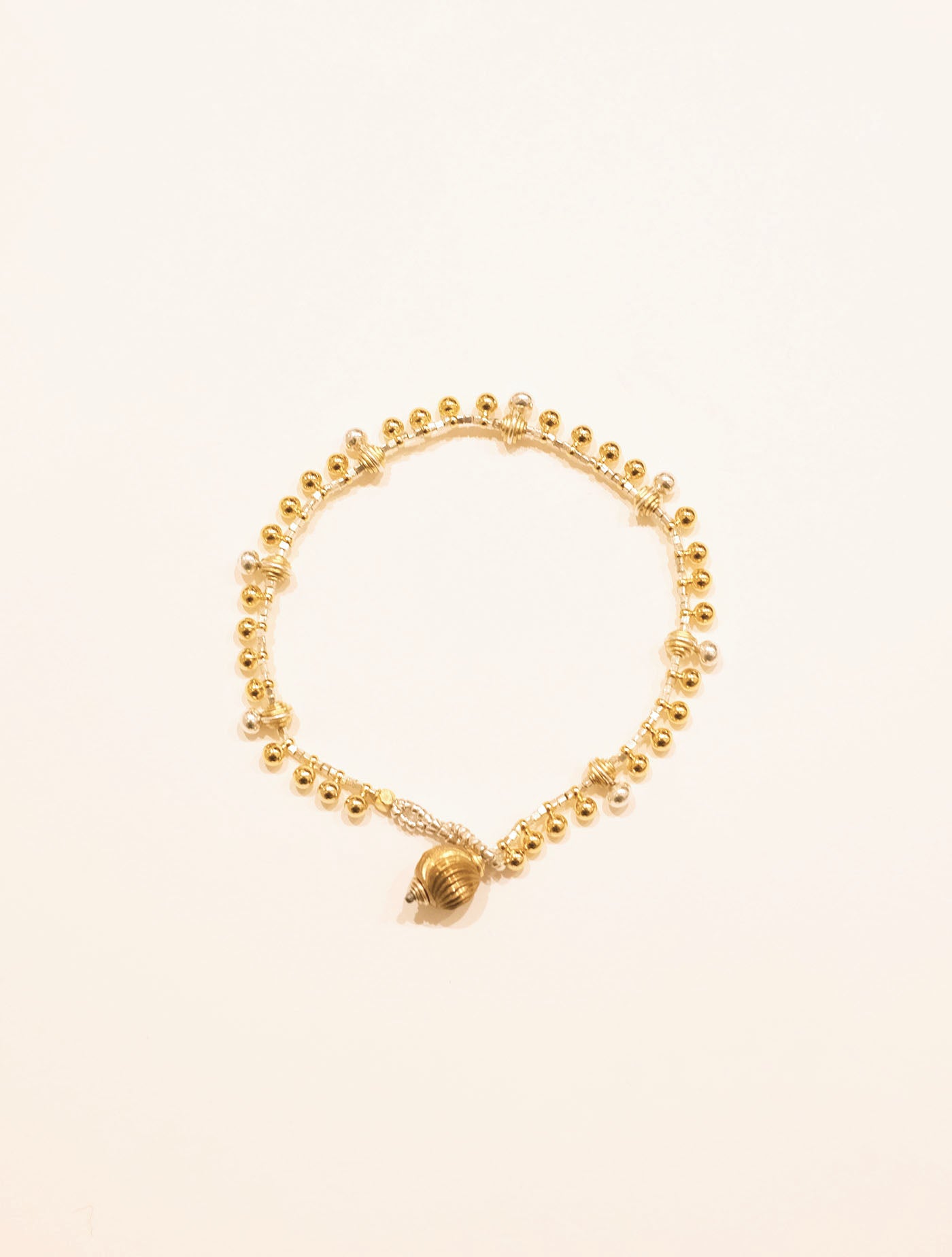 金色丸型は真鍮、ストッパーには蜜柑型の真鍮を使用したブレスレットです。