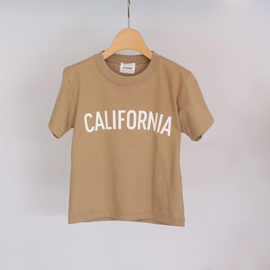 ”CALIFORNIA”の文字がプリントされたポップで可愛らしいTシャツ。