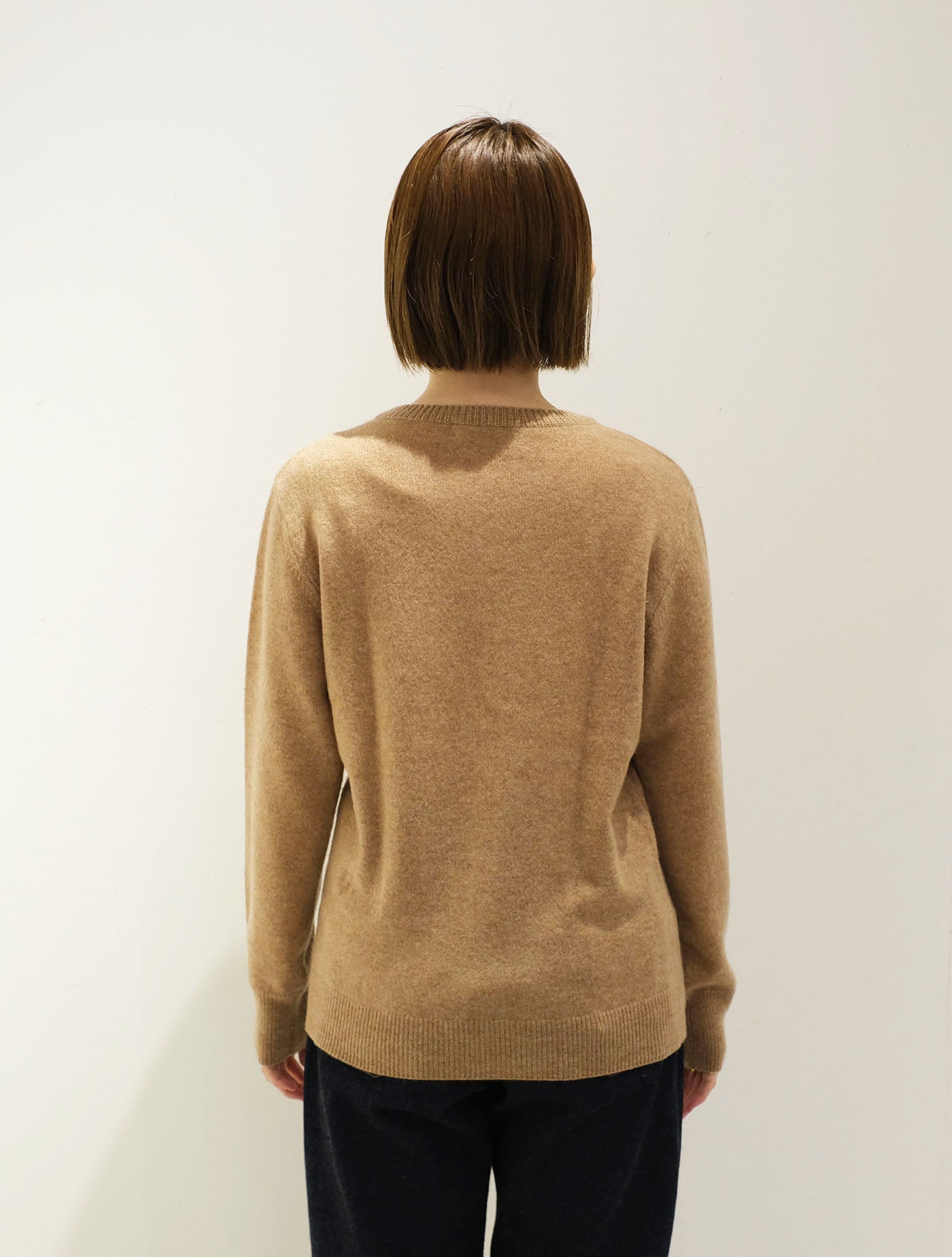 Limhomeの秋冬で登場する“ecole sweater”のシルエットをそのままに、襟元を浅めのVネックにした、ふわふわで柔らかいカシミヤ100%セーター。