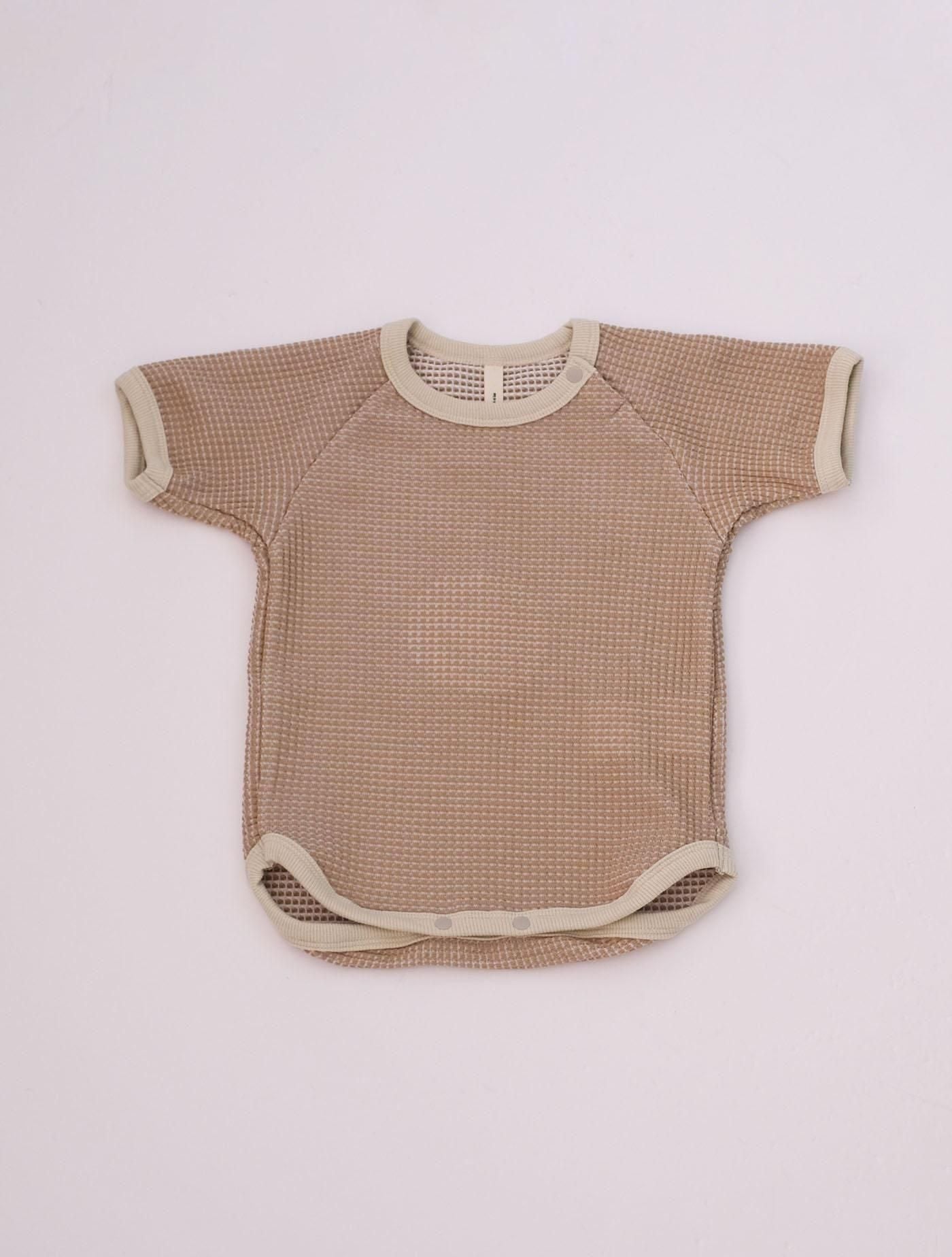 こちらはブランドオリジナルで作った、バイカラーのワッフル素材を使用したTシャツ。