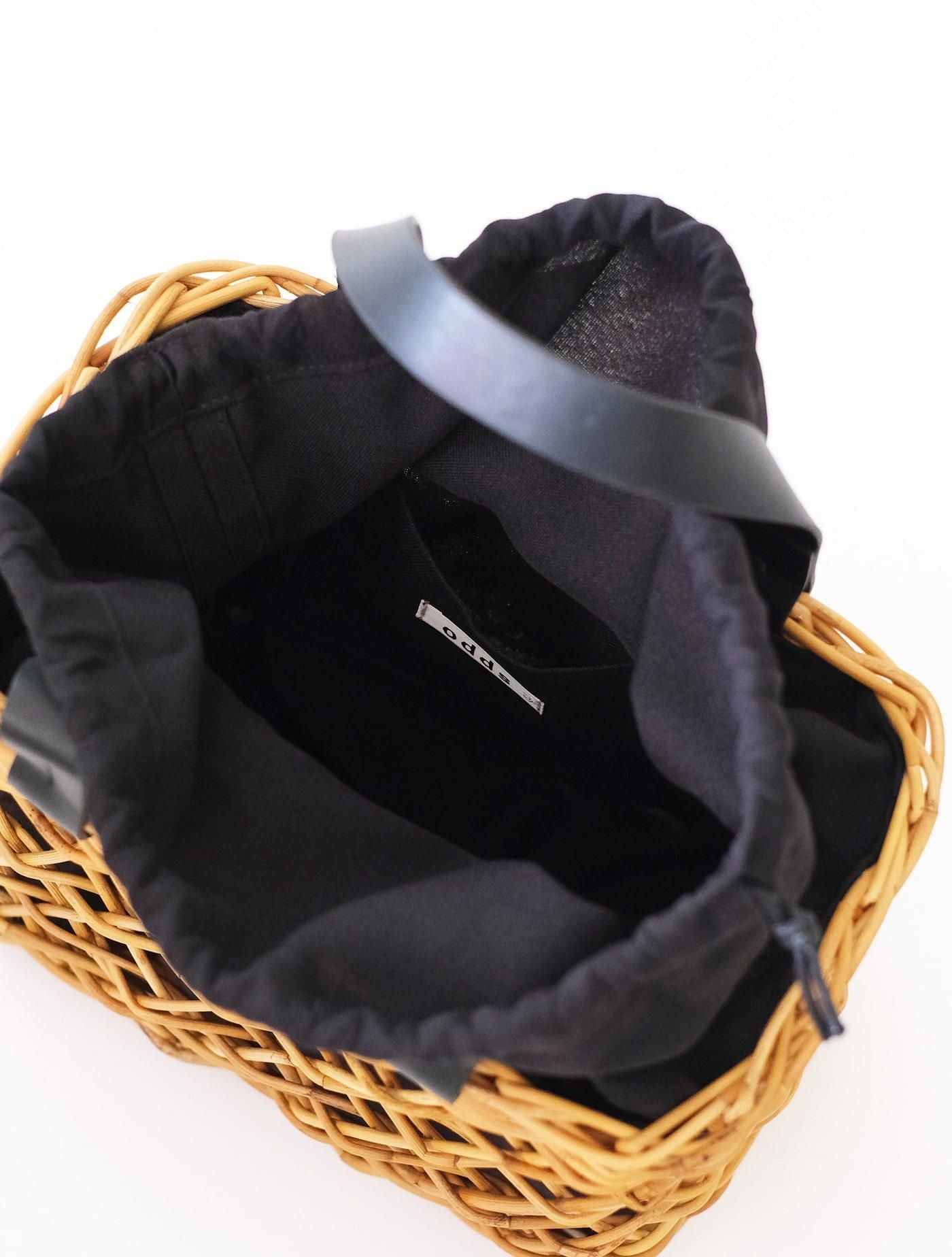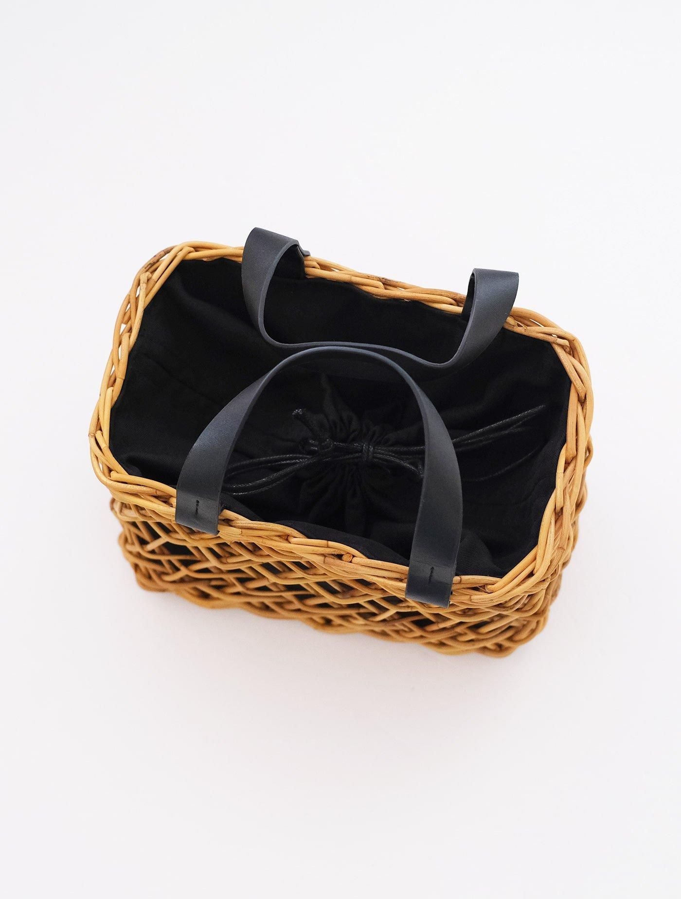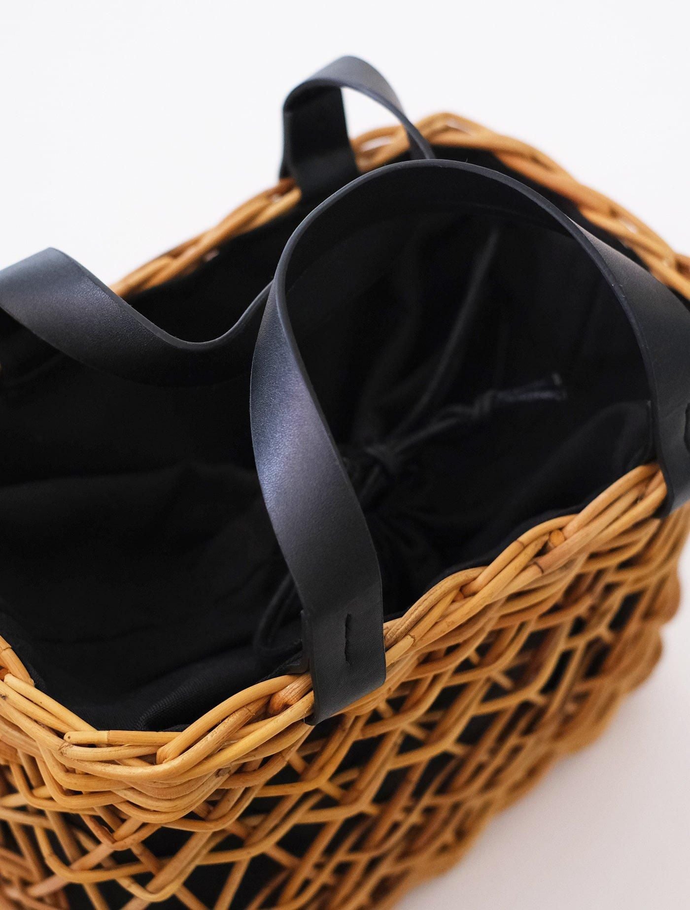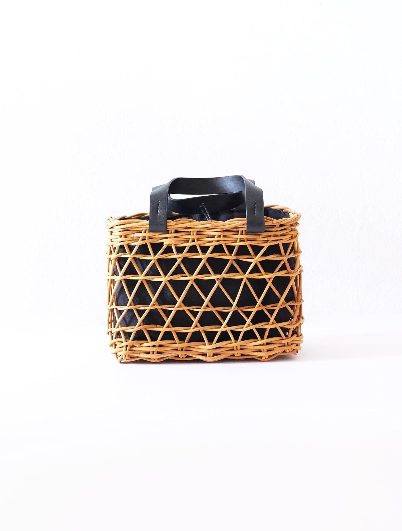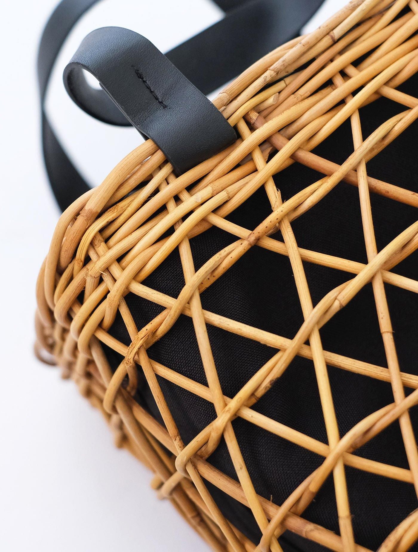 ラタンの一種であるアラログという素材に黒の取手を組み合わせることで、