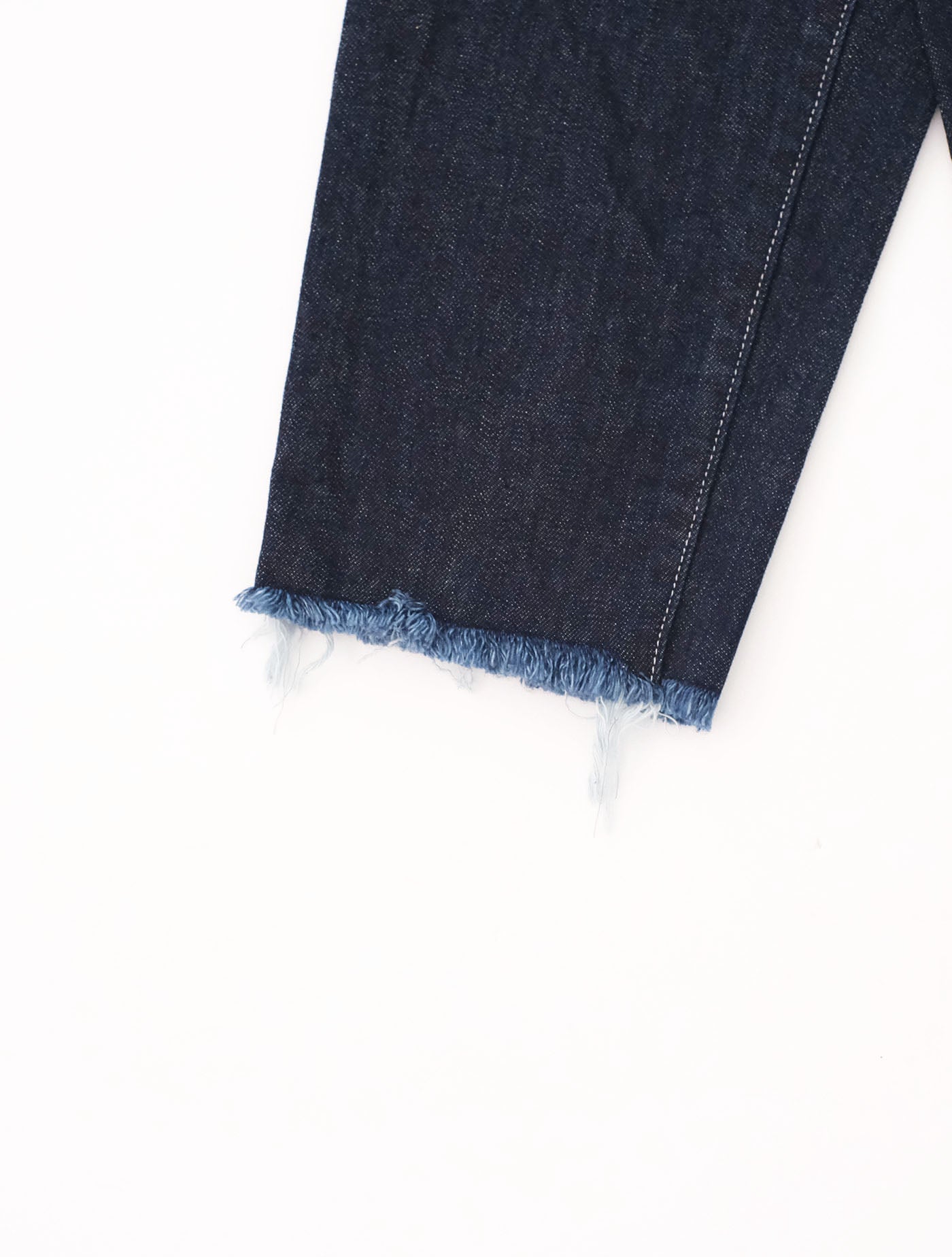 裾はくるぶし丈でたちきりなので、ラフな印象のジーンズです。